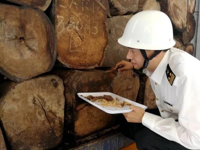该批原木共34立方米、价值2448美元,鉴于其携带活的钻蛀性有害生物,大榭海关按照规定对其进行了相应的检疫处理。