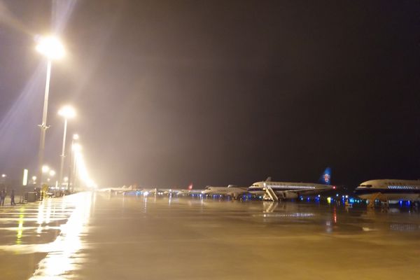 图为:遭受凝冻影响的停机坪 熊俊/摄