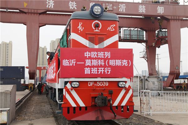 1月25日,在海关监管下,装载82个集装箱的班列从临沂出发,经满洲里口岸出境,直达俄罗斯莫斯科,这标志着临沂至莫斯科(明斯克)中欧班列正式开通。集装箱内装有机械设备、配件、纺织服装等货物,货值2120万元。