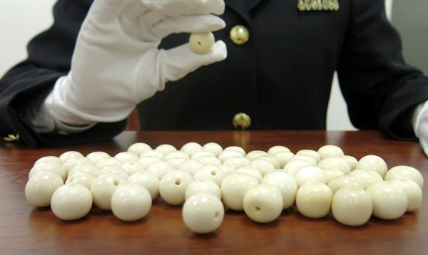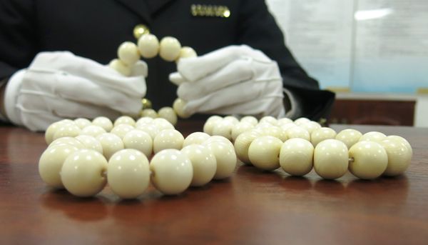 图为:郑州海关查获空港口岸入境象牙制品 常晟/摄