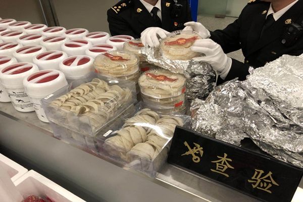 图为:沈阳海关查获的燕窝制品 李金/摄