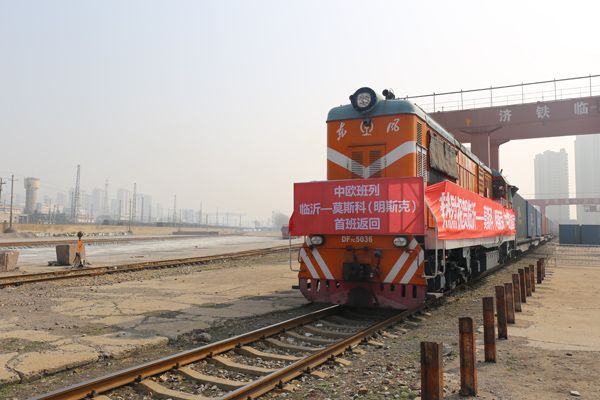 3月10日,在海关监管下,运载着41车木材的中欧班列(临沂至莫斯科)进境班列到达临沂火车站,标志着临沂至莫斯科中欧班列实现双向对开,这也是山东省内首班进境中欧班列。