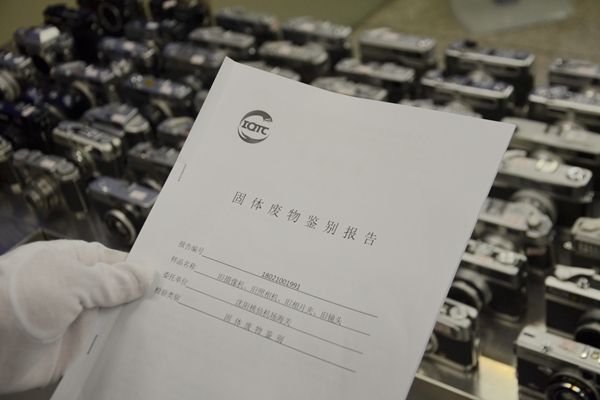 近日,沈阳海关空港口岸在对东京至沈阳的航班监管时,从一名中国籍旅客行李中查获疑似固体废物的旧相机73部、旧镜头10个及相片夹、相机壳等其他配件,共计93件。经鉴定,上述物品为固体废物。(李金/文)