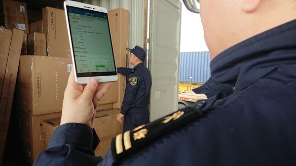 每台单兵终端都链接着海关总署研发的移动查验作业系统,通过系统获得后台数据支持,查验时可以直接调取货物信息、查看布控指令。“依靠无纸化、数据化设备,不仅缩短了我们查验时间,还能提升查验的规范化和标准化。” 陈佳俊说。