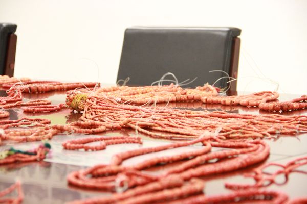 图为:昆明海关查获的红珊瑚制品 张宇欣/摄