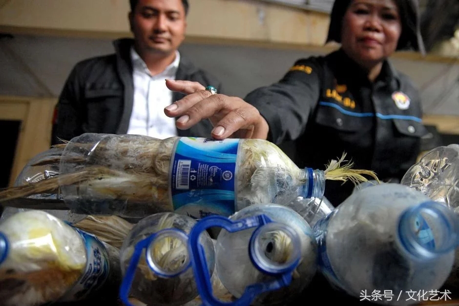 工作人员注意到,这些矿泉水瓶瓶盖是完全打开的,瓶底也被刀子给开。从里面装的鸟还在活动的这一现象,警方判断这些鸟都还活着