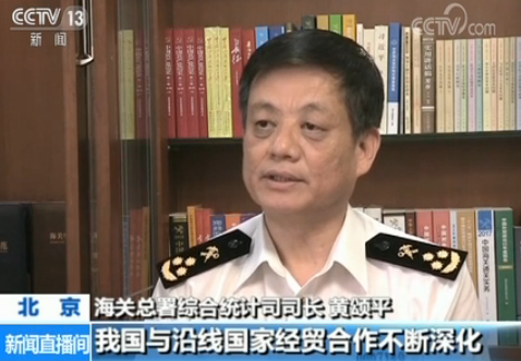 海关总署综合统计司司长 黄颂平:“一带一路”倡议提出以来,我国与沿线国家经贸合作不断深化,今年以来与其贸易增速高于我国总体进出口水平。
