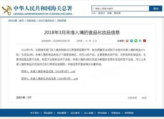 海关总署表示,对以上未准入境的食品化妆品均已在口岸退运或销毁。