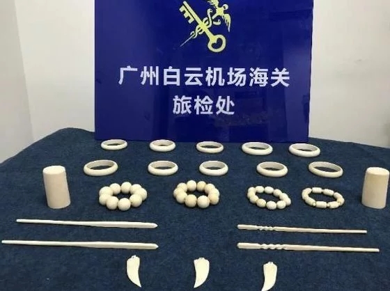白云机场海关查获一宗走私象牙制品入境案。5月11日下午,一名中国籍男子乘坐由亚的斯亚贝巴飞往广州的航班入境,白云机场海关现场关员对其所携带的一个背包和两个行李箱进行X光机检查时,发现其中一个行李箱图像存疑。经开箱检查,在行李箱角落发现多个由黄色胶布层层缠裹的物品。经检查,发现手链、手镯、筷子等象牙制品共23件,重1200克。该男子称,这些象牙制品是他在非洲务工期间购买,用黄色胶布层层包裹是为了携带“方便”。--《广州日报》