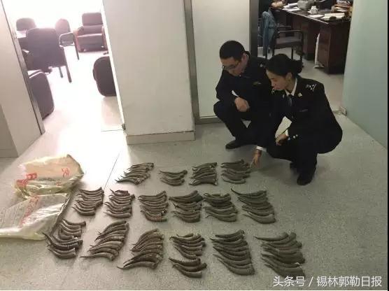 5月12日,二连海关关员在二连浩特公路口岸旅检入境大厅查获一名蒙古国籍男子人身藏匿黄羊角155根。这是二连海关今年首次在入境渠道查获的走私濒危物种案件。